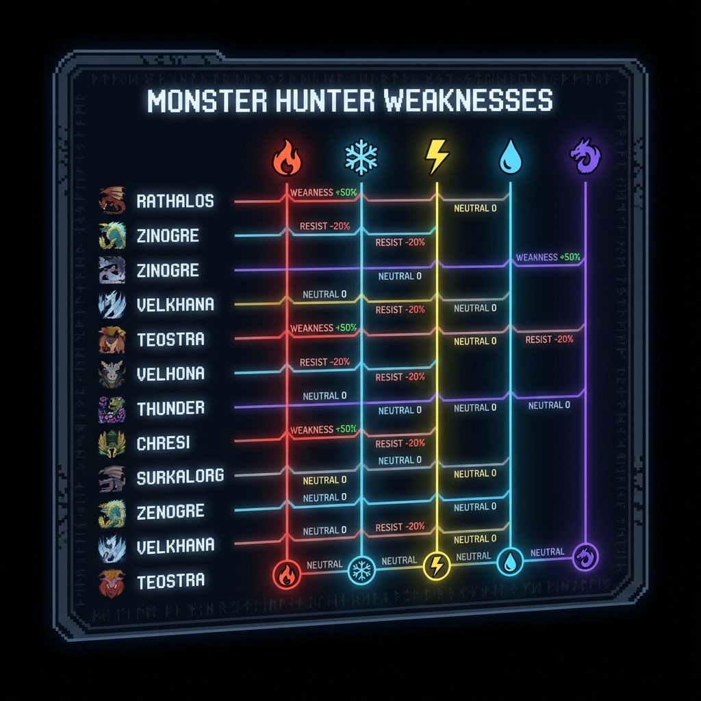 Master monster weaknesses in MH Wilds with our comprehensive guide. Learn elemental matchups, hitzone values, status thresholds, and optimal damage strategies for every monster.